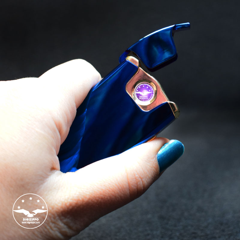 فندک برقی لایتر آبی از جنس استیل ضد زنگ است. این فندک زیبا دارای طراحی فوق العاده، بدنه آبی رنگ براق، بسیار با کیفیت و با دوام است. نوع عمکرد این فندک بصورت شوکری یا صاعقه ای است. برای استفاده از این محصول فقط کافیست درب لولاییاش را باز کرده و دکمه کنار فندک را فشار دهید، سپس شاهد جاری شدن امواج الکتریکی آن به شکل صاعقه ای خواهید بود. برای غیر فعال کردن شعله (امواج الکتریکی) کافی است درب فندک را ببندید. ال ای دی روی بدنه نشانگر میزان شارژ فندک است. این فندک شوکری قابل شارژ بوده و شارژر آن در بسته بندی محصول موجود است. این فندک برقی لایتر دارای طراحی جالب و مکانیزم منحصر به فرد است که در یک جعبه شکیل قرار گرفته است.