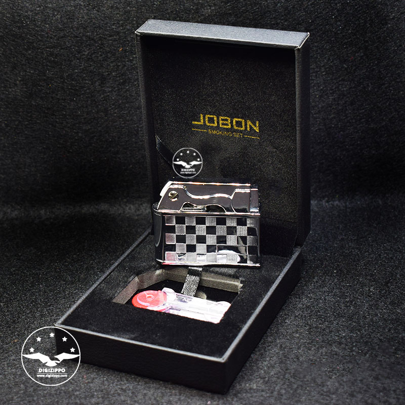 فندک بنزینی جوبون طرح شطرنجی از جنس فلز برنج و بسیار با کیفیت میباشد. برای زیبایی بیشتر روی بدنه فندک مربعهایی شطرنجی بصورت مات و براق حک شده است و زیبایی چشمگیری به این فندک لوکس بخشیده است. در داخل جعبه بسیار شیک فندک جوبون سنگ فندک و همچنین ابزار تعویض سنگ فندک قرار گرفته است.