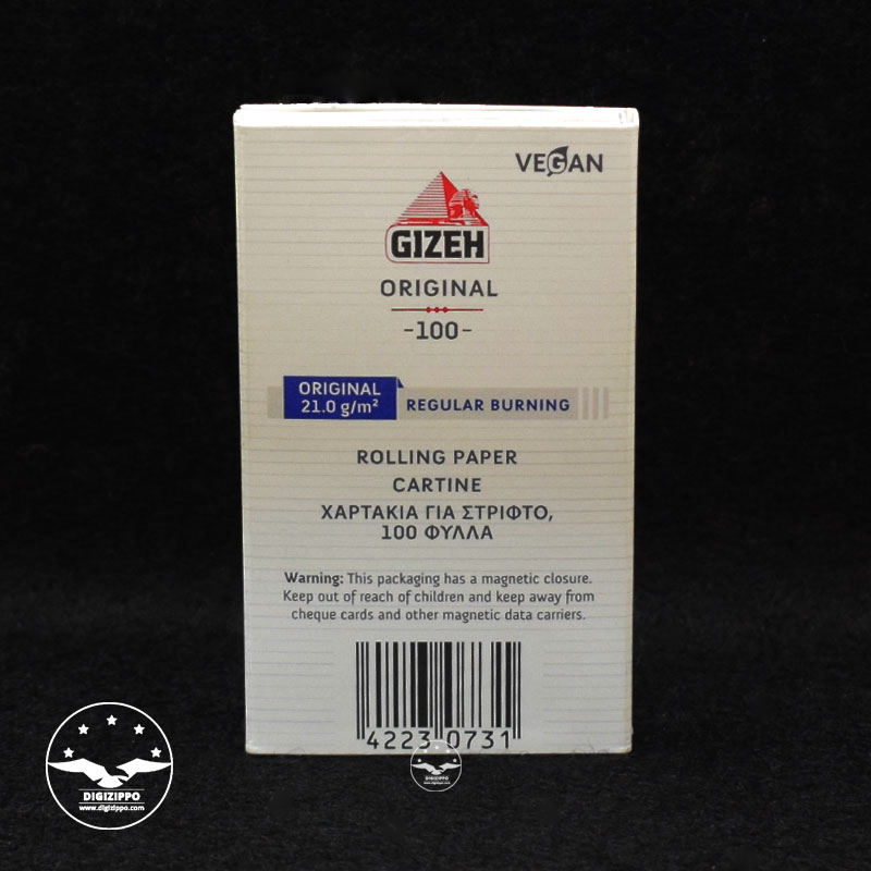 کاغذ سیگارپیچ «گیزه» مدل «رگولار» (Regular Gizeh paper) مناسب برای رولینگ سیگارهای دست پیچ می‌باشد. برای یک رول سیگار کامل می‌توانید از یک دستگاه سیگار پیچ استفاده کنید. استفاده از کاغذ سیگارپیچ گیزه به دلیل کونیک بودن لبه‌ها راحت تر از بقیه انواع سیگارپیچ‌ها می‌باشد. این کاغذ سیگارپیچ ساخت آلمان، از لحاظ ضخامت در طبقه بندی کاغذهای ضخیم و بدون گوگرد قرار می‌گیرد. براي چسب آن از شيره طبيعي درخت اقاقيا استفاده شده است.